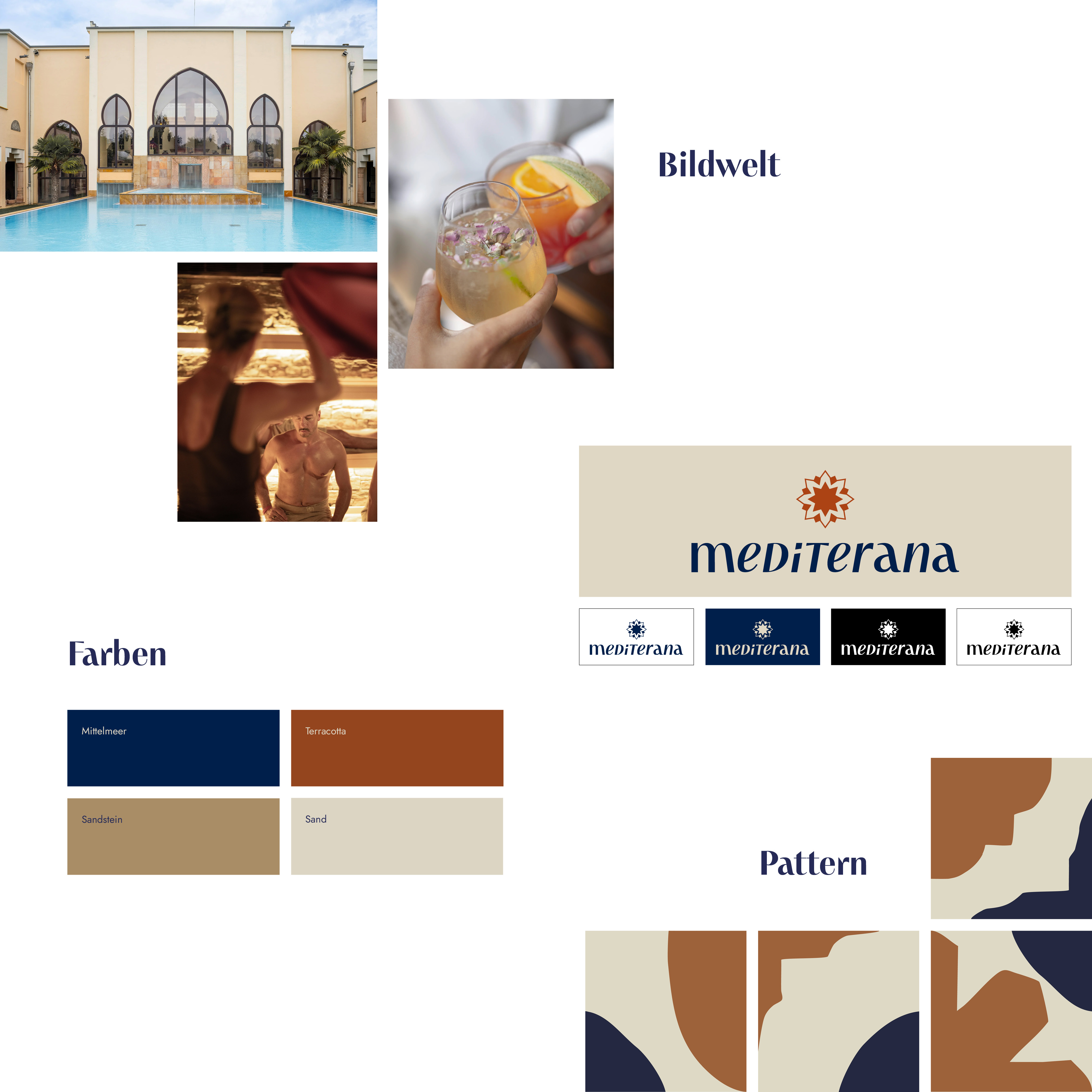 Das Mediterana ist eine Premium-Wellness-Oase, die Authentizität, Liebe zum Gast und vielfältige Spa- und Fitnessexpertise an einem Ort mit besonderer Atmosphäre vereint. Es setzt mit einer faszinierenden Angebotsvielfalt Trends für Erholung und möchte seine Vorreiterrolle weiter ausbauen. Damit diese Entwicklung auch visuell im Auftritt und der Kommunikation dargestellt wird, hat das Mediterana uns mit einem umfassenden Redesign der Marke beauftragt.